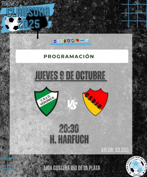 También se definió la fecha pendiente de la tercera jornada del femenino, entre Verónica y Juventud Unida: el clásico se jugará el jueves 9 de octubre a las 20:30 hs. en la cancha de Verónica, que hará de local en el Harfuch.