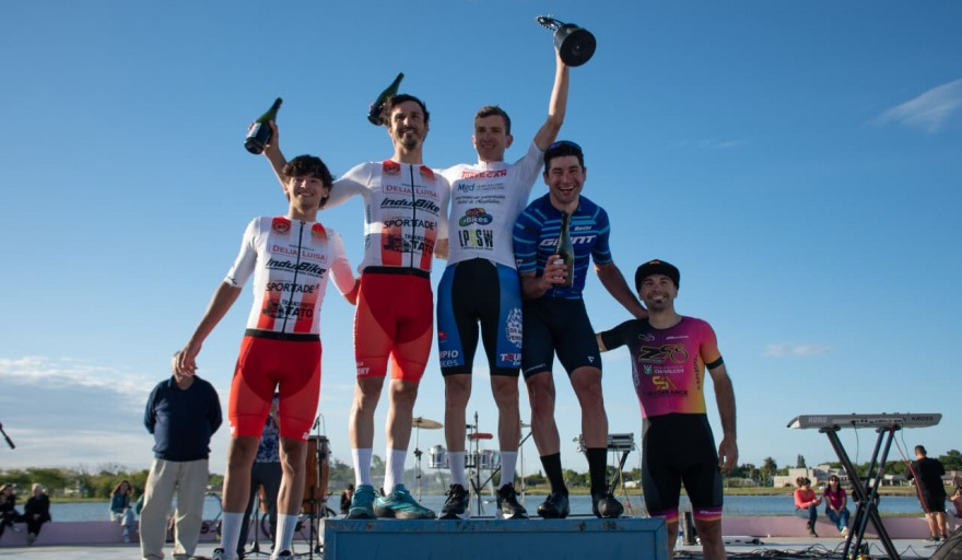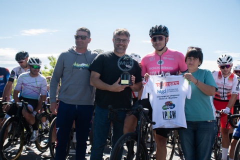 En las pruebas Elite y Damas, el Intendente Lisandro Hourcade fue el encargado de bajar la bandera a cuadros y entregar las camisetas y copas a los ganadores, acompañando una jornada que marcó el regreso del ciclismo de ruta al distrito.