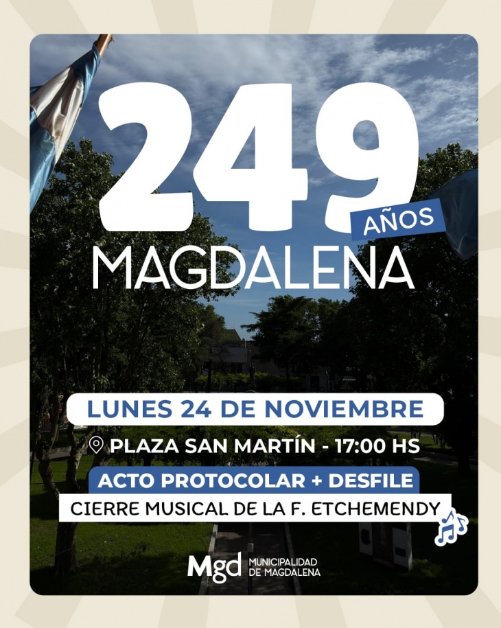 El Municipio invitó a todos los vecinos a acompañar esta fecha significativa, reafirmando el valor de la historia local y el compromiso colectivo con las tradiciones que distinguen a Magdalena.