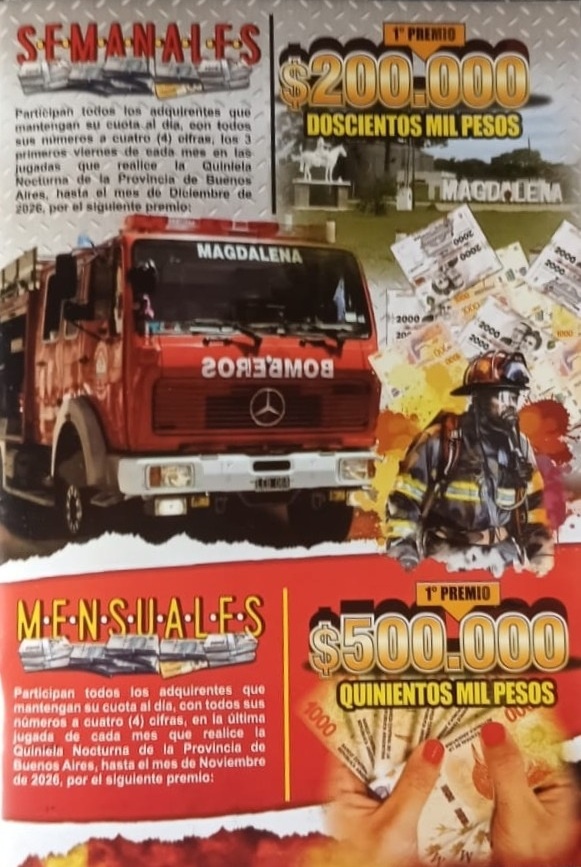Desde Bomberos Voluntarios invitaron a la comunidad a adquirir la rifa como una forma directa de apoyar el funcionamiento del cuartel y sostener un servicio esencial para toda Magdalena.