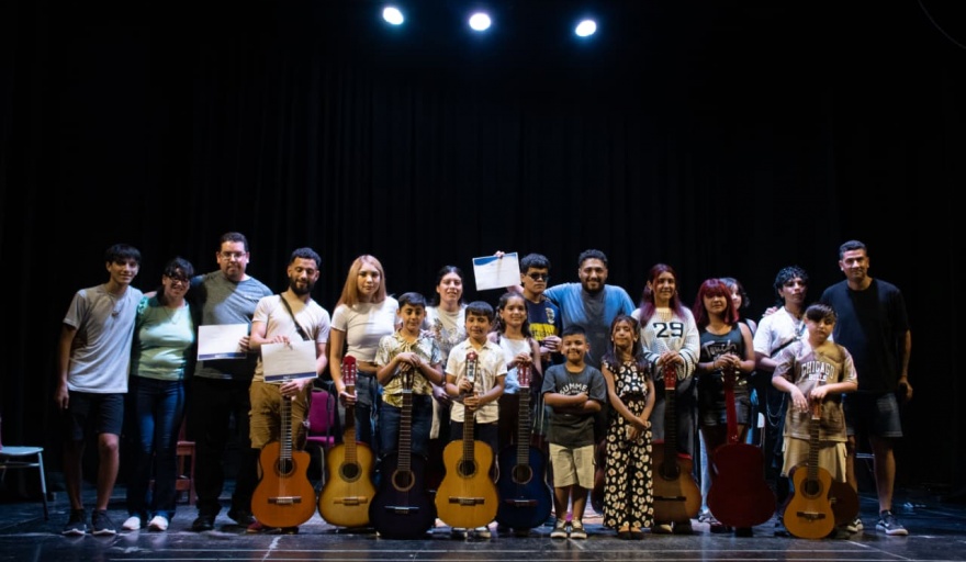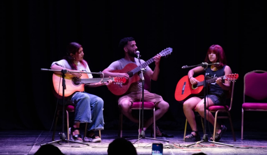 En el Teatro Español se realizaron las muestras finales de los talleres de Guitarra, Canto y Danzas. Los alumnos subieron al escenario para compartir el trabajo desarrollado durante el año, acompañados por familias, amigos y vecinos que celebraron el crecimiento artístico y el compromiso de cada grupo.