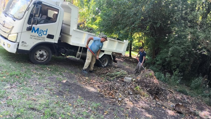 En distintos barrios de Magdalena avanzan los operativos de limpieza y recolección de ramas, como parte de las tareas habituales de mantenimiento del espacio público que lleva adelante el Municipio.