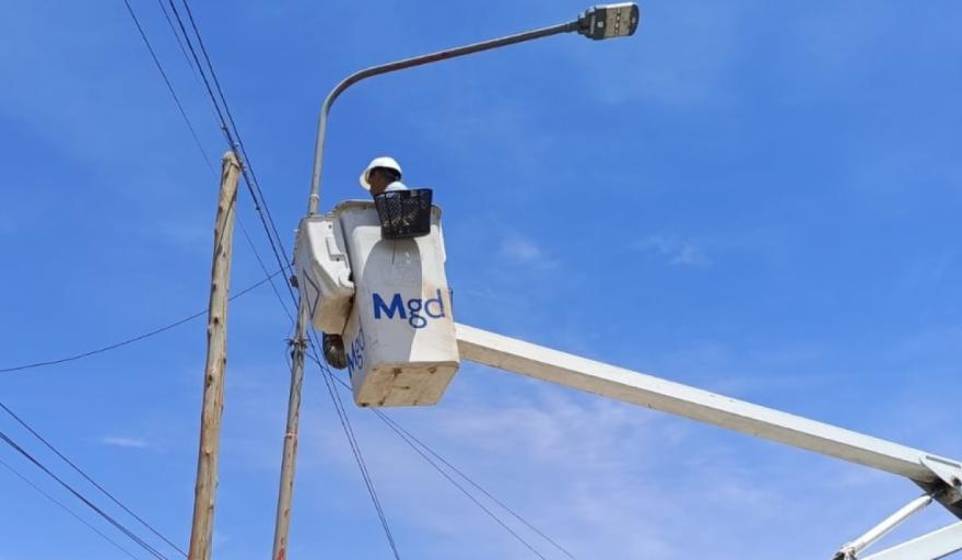 Las cuadrillas municipales también trabajan en el mantenimiento del alumbrado público, realizando reparaciones y ajustes para fortalecer la iluminación y la seguridad en la vía pública.