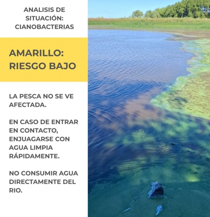De acuerdo al relevamiento, el Balneario Magdalena se encuentra en nivel amarillo, lo que indica riesgo bajo. En estas condiciones, la actividad de pesca no se ve afectada, aunque se recomienda no consumir agua directamente del río.