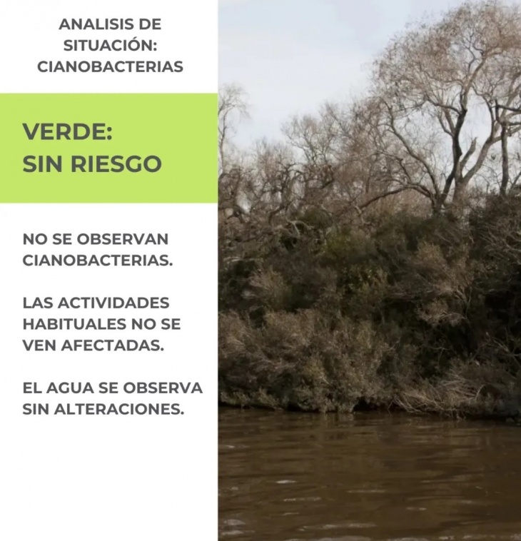En tanto, el Balneario Atalaya presenta nivel verde, sin riesgo. Allí no se observan cianobacterias y las actividades recreativas pueden desarrollarse con normalidad.