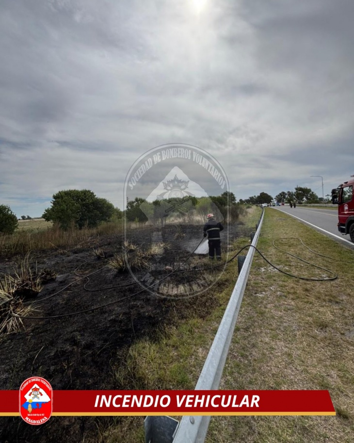 Durante la tarde del sábado 25 de enero, a las 15:25, se registró un incendio vehicular sobre la Ruta 11, en jurisdicción de Magdalena. Al lugar acudieron las unidades N°19, N°25 y N°20 de Bomberos Voluntarios de Magdalena, con un total de 17 efectivos, que lograron controlar la situación sin que se informaran personas heridas.