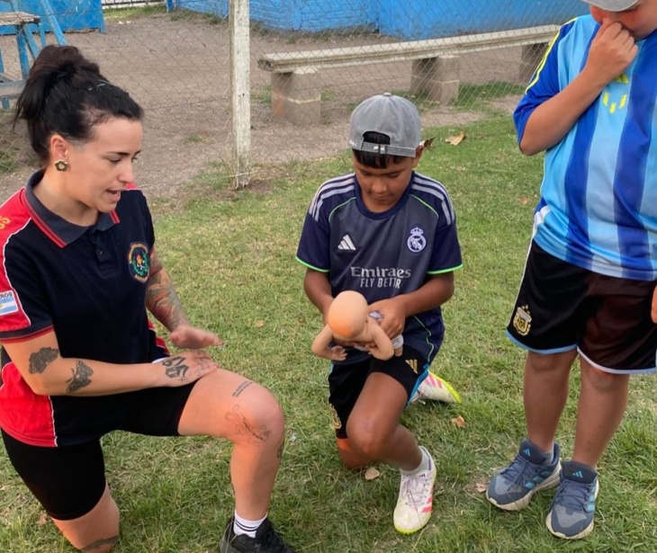 La capacitación también incluyó a los profesores de la colonia, reforzando la importancia de que quienes trabajan en espacios recreativos y deportivos cuenten con herramientas esenciales para actuar ante eventuales situaciones críticas.