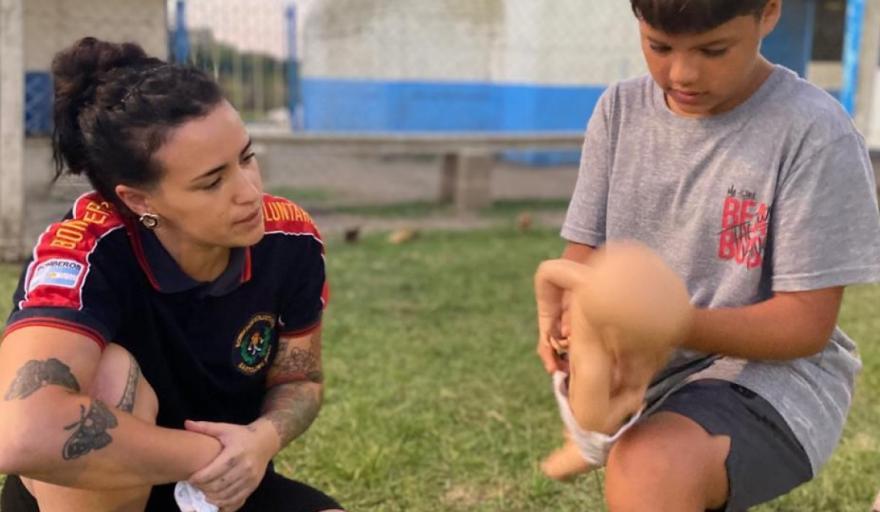 En el marco de una acción articulada entre instituciones locales, el Área de Instrucción de los Bomberos Voluntarios de Bavio realizó una capacitación en Reanimación Cardiopulmonar (RCP) destinada a los niños y niñas que participan de la Colonia Municipal, que funciona en el Club Racing de Bavio.