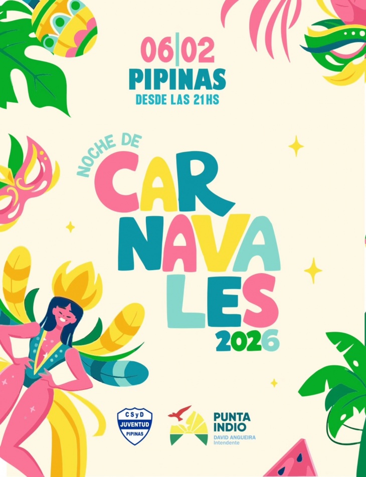 La Noche de Carnavales 2026 se suma a la agenda cultural de verano en Punta Indio, recuperando el espíritu festivo y popular del carnaval y consolidando a Pipinas como punto de encuentro para vecinos y visitantes.