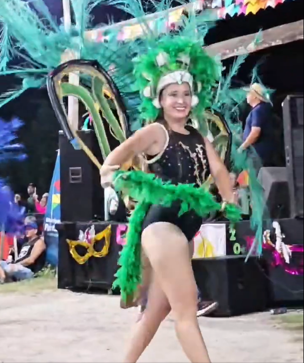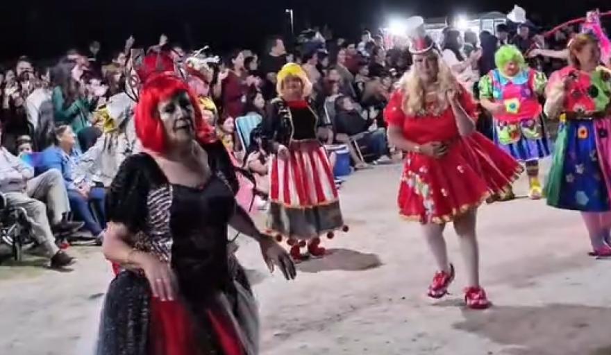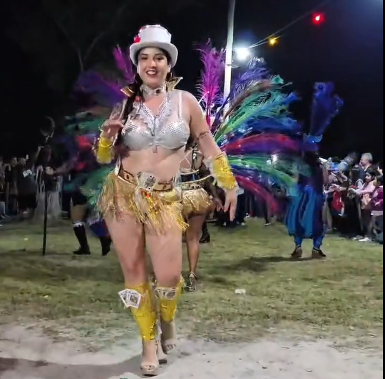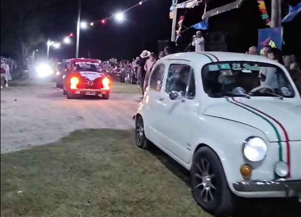 La propuesta incluyó el desfile de comparsas locales como Sambayona y Arcoíris, que aportaron ritmo y color a la noche. También fue parte del recorrido la exhibición de los Fiat 600 del grupo Los Cómplices del 600, sumando un atractivo que combinó tradición carnavalera con identidad fierrera.