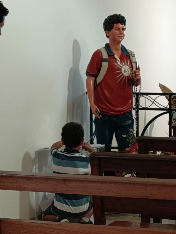 Salzano aseguró que reza para que la imagen de Carlo que veneran sea instrumento de la gracia de Dios, que toque corazones, despierte conversiones sinceras, fortalezca la fe de los jóvenes y acompañe a las familias que se acerquen con confianza.