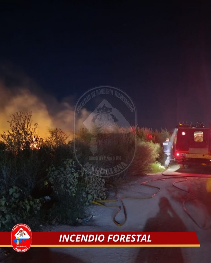 Un incendio forestal se registró este 2 de marzo en la ciudad de Magdalena y demandó la intervención de los Bomberos Voluntarios. El alerta fue recibido alrededor de las 20:20 horas.