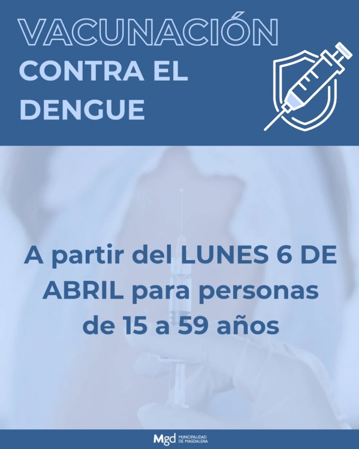 El Municipio de Magdalena informó que este lunes 6 de abril comenzará la vacunación contra el dengue en el Hospital Santa María Magdalena y en distintas unidades sanitarias del distrito.